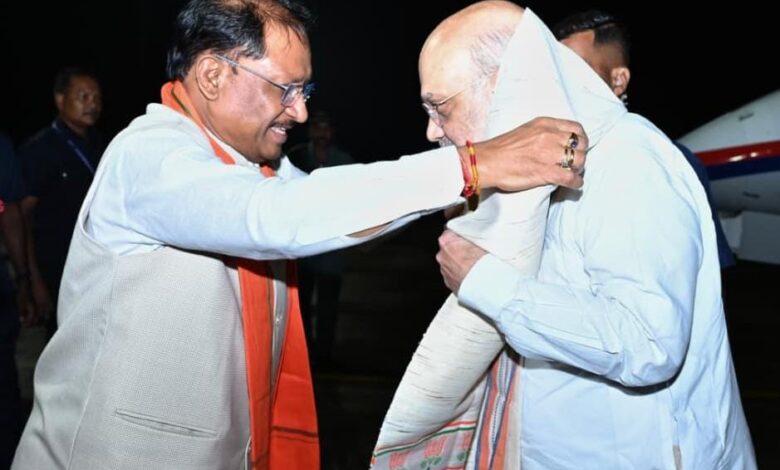 केंद्रीय गृह मंत्री अमित शाह का मुख्यमंत्री विष्णुदेव साय ने स्वामी विवेकानंद विमानतल पर किया आत्मीय स्वागत