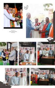 बधाई एवं शुभकानाओं की दौर में विशेष रूप से रायपुर दक्षिण विधायक सुनील सोनी, उद्योग विकास निगम के अध्यक्ष राजीव अग्रवाल, अध्यक्ष केदार नाथ गुप्ता, अध्यक्ष सलीम राज, भाजपा जिलाध्यक्ष रमेष ठाकुर अकबर अली, पियुष मिश्रा, गुणनीधि मिश्रा मंडल अध्यक्ष जितेन्द्र गंडेचा, संदीप जंघेल, दलविंदर सिंह बेदी, राम प्रजापति, अखिलेश पवार, महेन्द्र खोड़ियार, संतोष साहू, प्रमोद साहू, कैलाश बेहरा, महेश ध्रुव, संतोष हियाल, प्रदीप वर्मा स्थानीय समस्त भाजपा प्रदेश, जिला, मंडल के वर्तमान पूर्व जनप्रतिनिधीयों सहित भाजपा महिला मोर्चा, युवा मोर्चा, समस्त प्रकोष्ठ के पदाधिकरी व मीडिया साथियों के साथ बड़ी संख्या में समर्थको कार्यकर्ताओं एवं स्थानीयजनों की उपस्थिति रही।