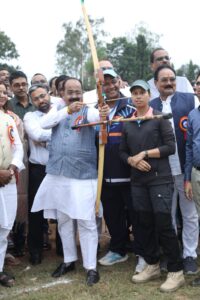 उत्तर बस्तर कांकेर / प्रदेश के उप मुख्यमंत्री, खेल एवं युवा कल्याण, नगरीय प्रशासन एवं विकास, लोक स्वास्थ्य यांत्रिकी और लोक निर्माण तथा जिले के प्रभारी मंत्री श्री अरूण साव ने आज बस्तर ओलंपिक 2025 के तहत विकासखण्ड स्तरीय खेल प्रतियोगिताओं का शुभारंभ किया। इस दौरान उन्होंने खेल ध्वज फहराकर तथा उपस्थित खिलाड़ियों के बीच जाकर उन्हें प्रोत्साहित किया। साथ ही तीरंदाजी, व्हालीबॉल और रिले रेस में सांकेतिक तौर पर हिस्सा लेकर प्रतिभागी खिलाड़ियों को अपनी शुभकामनाएं दीं। इस अवसर पर उप मुख्यमंत्री ने गोविंदपुर के खेल मैदान में शेड निर्माण के लिए 25 लाख रूपए की घोषणा की।