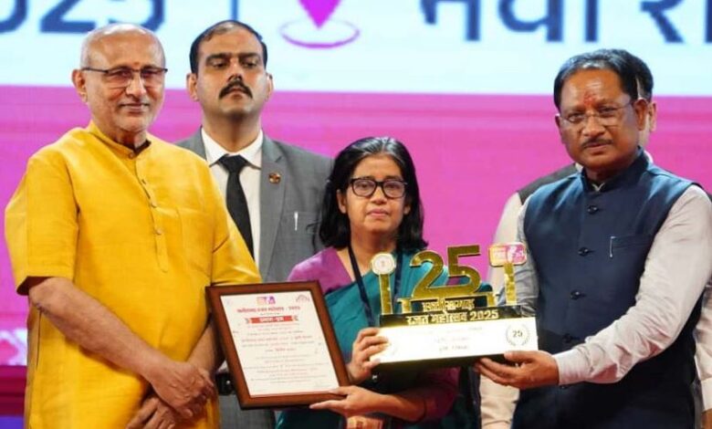 राज्योत्सव के समापन समारोह में उप राष्ट्रपति श्री सी.पी. राधाकृष्णन के हाथों सचिव श्रीमती शहला निगार ने ग्रहण किया पुरस्कार