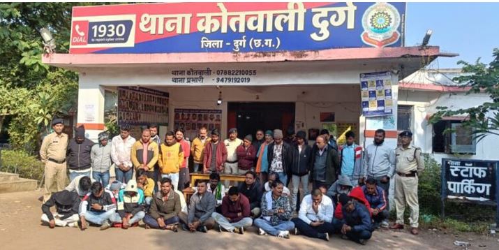 दुर्ग सिटी कोतवाली पुलिस की बड़ी कार्रवाई, जुआ खेलते 39 संदिग्धों को पकड़ा, 11.30 लाख का माल जब्त