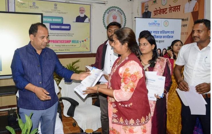 रायपुर, मुख्यमंत्री श्री विष्णुदेव साय के मंशानुरूप स्थानीय युवाओं को रोजगार एवं स्वरोजगार से जोड़ने तथा छत्तीसगढ़ के पर्यटन को नई पहचान देने हेतु जिला प्रशासन रायपुर एवं ईज़ माई ट्रिप द्वारा संचालित नवाचार प्रोजेक्ट पर्यटन साथी का आज सफलतापूर्वक समापन हुआ। एक अक्टूबर 2025 को शासकीय आईटीआई सड्डू, रायपुर में प्रारंभ हुए इस विशेष प्रशिक्षण कार्यक्रम का, 30 नवंबर 2025 को प्रशिक्षण पूर्ण होने पर आयोजित समापन कार्यक्रम में कलेक्टर डॉ. गौरव सिंह ने आज 62 प्रशिक्षणार्थियों को प्रमाण-पत्र एवं ईज़ ट्रिप प्लानर, नई दिल्ली की ओर से जॉब ऑफर लेटर प्रदान किए। 123 प्रशिक्षणार्थी युवाओं ने प्रशिक्षण में भाग लिया था।