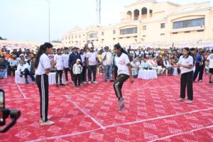 मुख्य अतिथि श्री मनोज तिवारी ने अपने प्रेरक संबोधन और सुरीली प्रस्तुति से पूरे वातावरण को देशभक्ति और उत्साह से भर दिया। उन्होंने युवाओं से नशे से दूर रहकर खेलों को अपनाने का आह्वान किया।