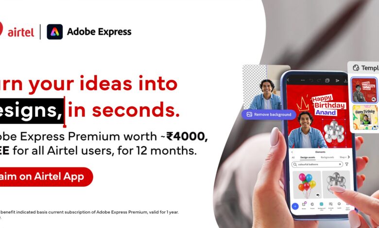 वैश्विक स्तर पर पहली बार, एयरटेल ने 36 करोड़ भारतीयों को एडोबी एक्सप्रेस प्रीमियम नि:शुल्क उपलब्ध कराया
