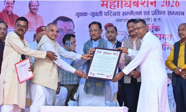 मुख्यमंत्री श्री विष्णु देव साय ने छत्तीसगढ़ कुम्भकार समाज के महाअधिवेशन, युवक-युवती परिचय सम्मेलन और प्रतिभा सम्मान समारोह के सफल आयोजन के लिए बधाई दी।