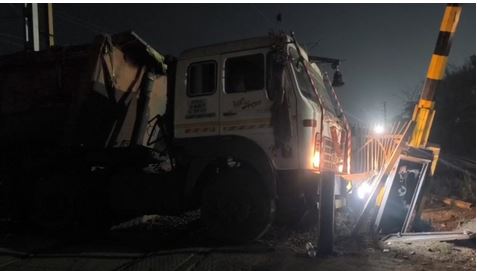 रायगढ़। मुंबई-हावड़ा रेल मार्ग पर भूपदेवपुर रेलवे स्टेशन के पास बीती रात एक बड़ा रेल हादसा होते-होते टल गया. नहरपाली रेल फाटक पर एक तेज रफ्तार कोयला लदे ट्रेलर ने बंद फाटक के लीवर क्रॉसिंग को जोरदार टक्कर मार दी. टक्कर इतनी भीषण थी कि लीवर पूरी तरह टूट गया और ट्रेलर का अगला हिस्सा सीधा रेलवे ट्रैक के बीचों-बीच जा फंसा. ट्रेलर के ट्रैक पर फंसे होने के कारण मुंबई-हावड़ा और हावड़ा-मुंबई रूट का रेल यातायात पूरी तरह ठप हो गया. साथ ही दुर्घटना का असर सुबह की ट्रेनों पर भी पड़ा.