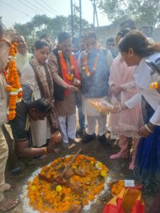 भूमिपूजन पण्डित भगवती चरण शुक्ल वार्ड क्रमांक 57 के पार्षद और रायपुर नगर निगम के एमआईसी सदस्य अमर गिदवानी सहित महिलाओं, गणमान्यजनों, सामाजिक कार्यकर्त्ताओं, नवयुवकों, आमजनों की उपस्थिति में रायपुर दक्षिण विधायक सुनील सोनी ने किया. रायपुर दक्षिण विधायक ने कहा कि रायपुर दक्षिण विधायक निधि आम जनता की निधि है और इसका आम जनता सुविधा के लिए जनहित में सदुपयोग किया जाता है. दक्षिण विधायक श्री सुनील सोनी ने तत्काल स्वीकृति अनुसार नया सामुदायिक भवन दक्षिण विधायक निधि मद से अरविन्द नगर पंजाबी कॉलोनी में सम्बंधित स्थल पर बनाया जाना प्रारम्भ करवाते हुए तय समयसीमा के भीतर गुणवत्ता सहित प्राथमिकता से जनहित में शीघ्र पूर्ण करवाना सुनिश्चित करवाने नगर निगम जोन 4 जोन कमिश्नर अरुण ध्रुव को निर्देशित किया. वार्ड 57 पार्षद एवं नगर निगम एमआईसी सदस्य श्री अमर गिदवानी ने वार्ड 57 क्षेत्र में रायपुर दक्षिण विधायक निधि मद से नया सामुदायिक भवन बनाने भूमिपूजन कर कार्यरम्भ किये जाने पर सभी वार्डवासियों की ओर से रायपुर दक्षिण विधायक सुनील सोनी को हार्दिक धन्यवाद दिया।