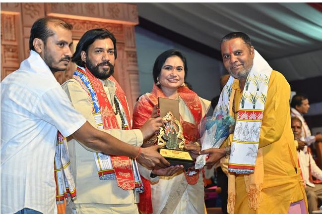 कार्यक्रम में मानस मंडली एवं सुप्रसिद्ध कलाकार श्रीमती पूनम विराट तिवारी को सम्मानित किया गया।