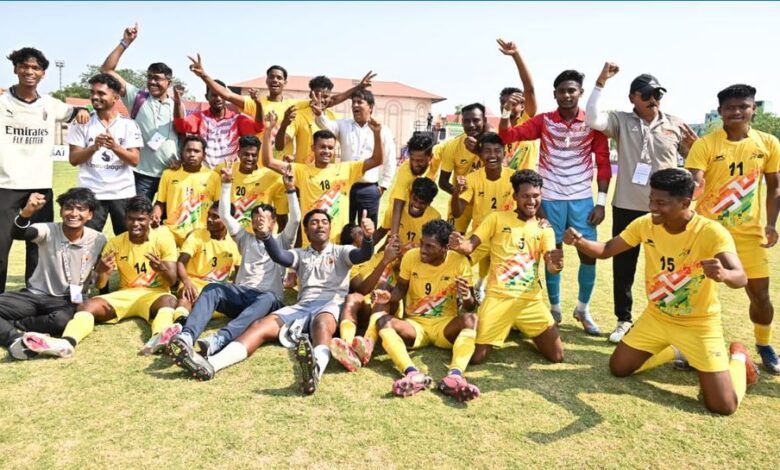 रायपुर, खेलो इंडिया ट्राइबल गेम्स के अंतर्गत आज रायपुर के स्वामी विवेकानंद एथलेटिक स्टेडियम, कोटा में खेले गए पुरुष फुटबॉल के फाइनल मुकाबले में छत्तीसगढ़ और पश्चिम बंगाल के बीच बेहद रोमांचक और कांटे की टक्कर देखने को मिली। इस बेहद संघर्षपूर्ण मुकाबले में छत्तीसगढ़ को पराजय का सामना कर रजत पदक से संतोष करना पड़ा।