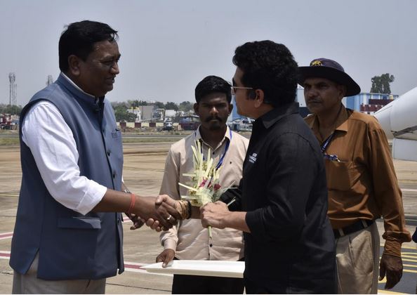 जगदलपुर, भारत रत्न और भारतीय क्रिकेट टीम के पूर्व कप्तान मशहूर क्रिकेटर श्री सचिन तेंदुलकर के बस्तर आगमन पर माँ दंतेश्वरी एयरपोर्ट जगदलपुर में वरिष्ठ अधिकारियों द्वारा आत्मीय स्वागत किया गया।