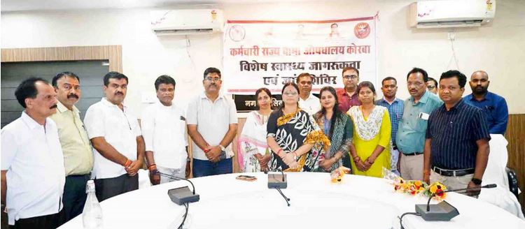 रायपुर, मुख्यमंत्री श्री विष्णुदेव साय एवं श्रम मंत्री श्री लखनलाल देवांगन के निर्देशानुसार प्रदेश के असंगठित क्षेत्र के श्रमिकों एवं उनके परिवारजनों के स्वास्थ्य की जांच व स्वास्थ्य जागरूकता हेतु आयोजित किये जा रहे शिविरों की कड़ी में कल बुधवार को कर्मचारी राज्य बीमा औषधालय कोरबा द्वारा निगम कार्यालय साकेत में विशेष स्वास्थ्य जागरूकता व जांच शिविर लगाया गया। महापौर श्रीमती संजूदेवी राजपूत ने शिविर का समापन किया तथा मुख्यमंत्री श्री सायं व श्रम मंत्री श्री देवांगन के प्रति आभार व्यक्त करते हुये कर्मचारी राज्य बीमा औषधालय के कार्यो की सराहना की।